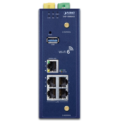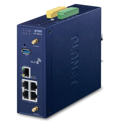 El punto de acceso inalámbrico industrial de banda dual 802.11ax de 1800 Mbps PLANET IAP-1800AX con 5 puertos LAN 10/100/1000T está equipado con una carcasa metálica resistente IP30 para un funcionamiento estable en entornos industriales pesados. Por lo tanto, el IAP-1800AX, compatible con tecnología MU-MIMO, OFDMA, Seamless Roaming, Beamforming y BSS Coloring, también proporciona una velocidad inalámbrica máxima de 1200 Mbps en la banda de 5 GHz y 600 Mbps en la banda de 2,4 GHz. La cantidad máxima de usuarios clientes es de hasta 150, lo que garantiza una conectividad más segura y robusta con la adopción de la tecnología Wi-Fi 6.