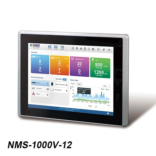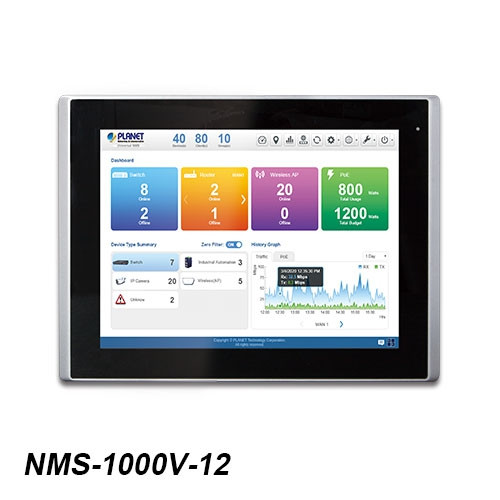 El controlador de gestión de red NMS-1000V de PLANET puede supervisar directamente todo tipo de dispositivos de red implementados sin tener que utilizar una computadora adicional. Sin embargo, los dispositivos implementados, como conmutadores administrados, convertidores de medios, enrutadores, puntos de acceso inteligentes, teléfonos VoIP, cámaras IP, etc., deben cumplir con el protocolo SNMP, el protocolo ONVIF y la utilidad PLANET Smart Discovery. De este modo, permite al administrador gestionar de forma centralizada una red de hasta 1024 nodos desde una oficina central, lo que aumenta enormemente la eficiencia de la gestión de la red y la energía. A través del panel táctil intuitivo, se pueden mostrar en tiempo real los mensajes de excepción de red para mejorar en gran medida la eficiencia del trabajo del personal de gestión de red. Con su gestión de autenticación de usuarios, el NMS-1000V mejora la seguridad de la transmisión de datos en los sistemas de automatización de fábricas modernas.