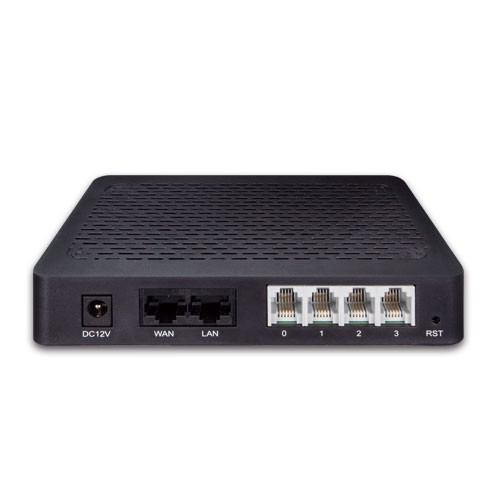 - FXS de 4 líneas se conecta a un teléfono analógico o PABX