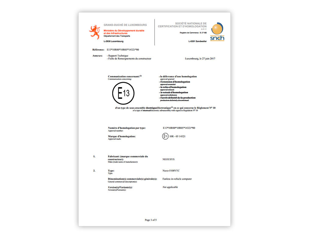 - Certificado EN 50155/ EN45545 y E13 Nº 10R-0514321