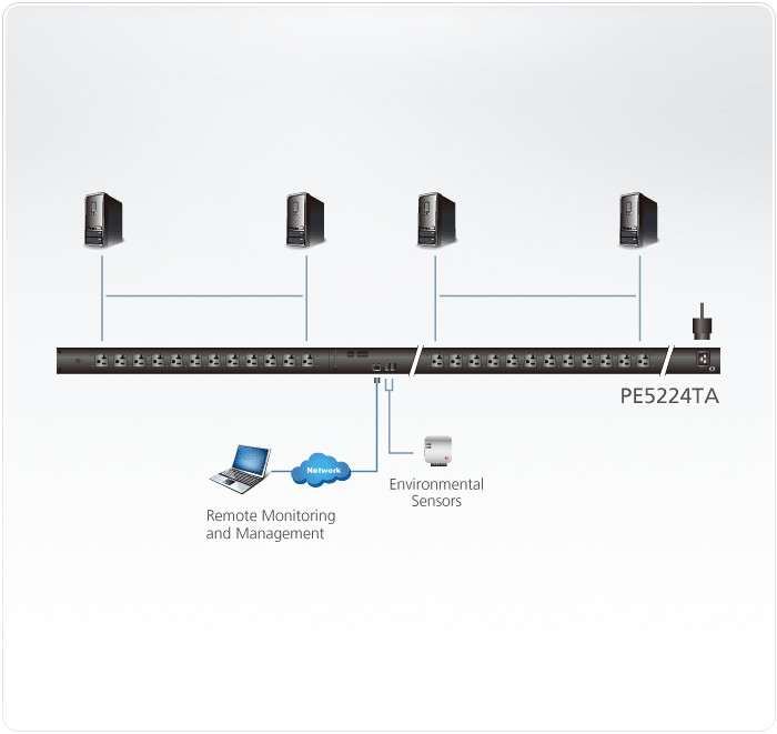 Las PDU eco ATEN NRGence™ PE5224TA son PDU inteligentes en formato compacto que contienen 24 tomas de corriente de CA disponibles en configuraciones de enchufe IEC o NEMA. Estas PDU eco en formato compacto y ligero presentan un ancho y una región de entrada más pequeños que las PDU estándar de bajo perfil de ATEN. La serie de formato compacto presenta un ancho de 56 mm que encaja a la perfección en los bastidores de servidor, por lo que ofrecen más espacio para la refrigeración y el mantenimiento. El diseño más pequeño concede un 8% más de espacio en el bastidor para aumentar el caudal de aire y refrigerar los equipos informáticos con más eficacia. Además aceleran el mantenimiento, ya que facilitan el acceso a los equipos que normalmente se instalan detrás de la PDU.
