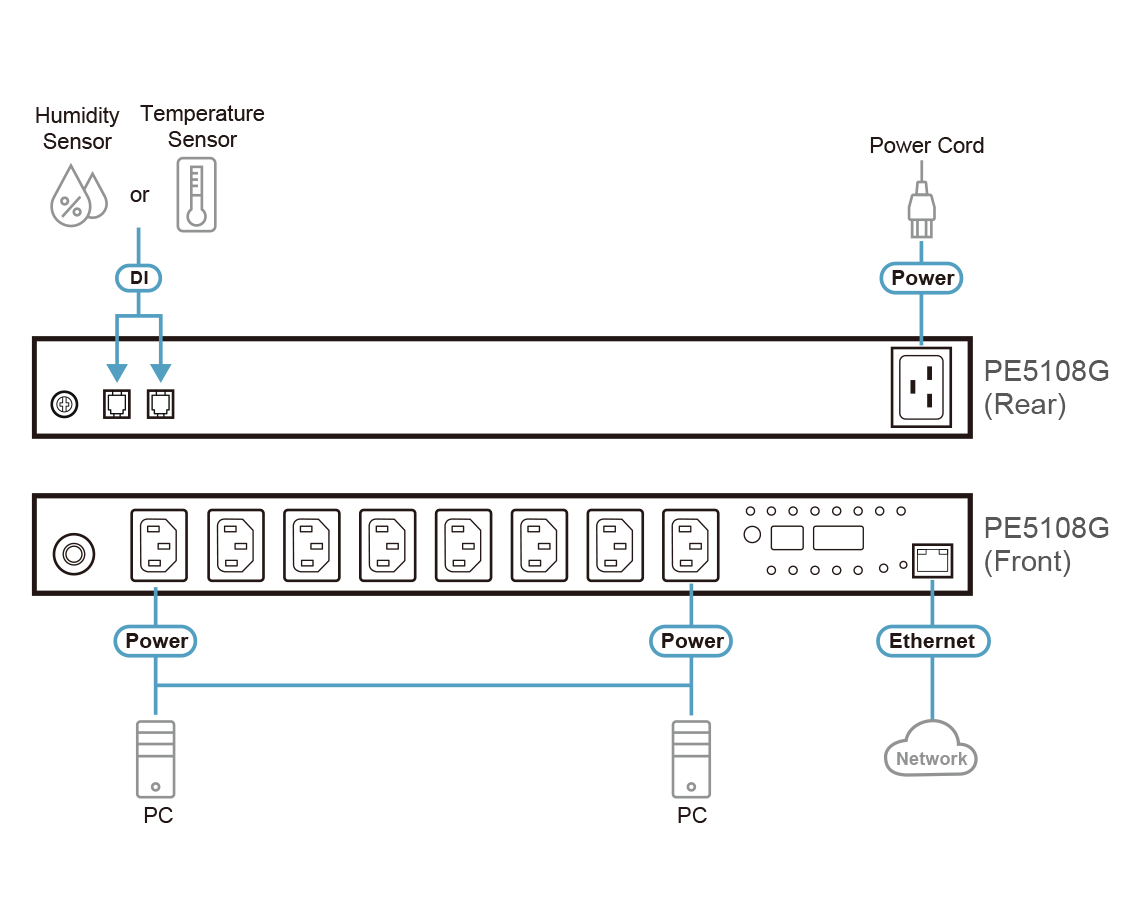 ATEN ha desarrollado una nueva generación de unidades de distribución de energía (PDU) respetuosas con el medio ambiente con el fin de mejorar la eficiencia en el uso energético del centro de procesamiento de datos. Las PDU eco PE5108 son PDU inteligentes que contienen 8 tomas eléctricas de CA, y que están disponibles con diversas configuraciones de enchufe IEC o NEMA. Ofrecen gestión eléctrica segura, centralizada, inteligente de los dispositivos informáticos del centro de procesamiento de datos (servidores, sistemas de almacenamiento, switches KVM, dispositivos de red, dispositivos de datos en serie, etc.), así como la capacidad de supervisar el estado del centro por medio de sensores*.