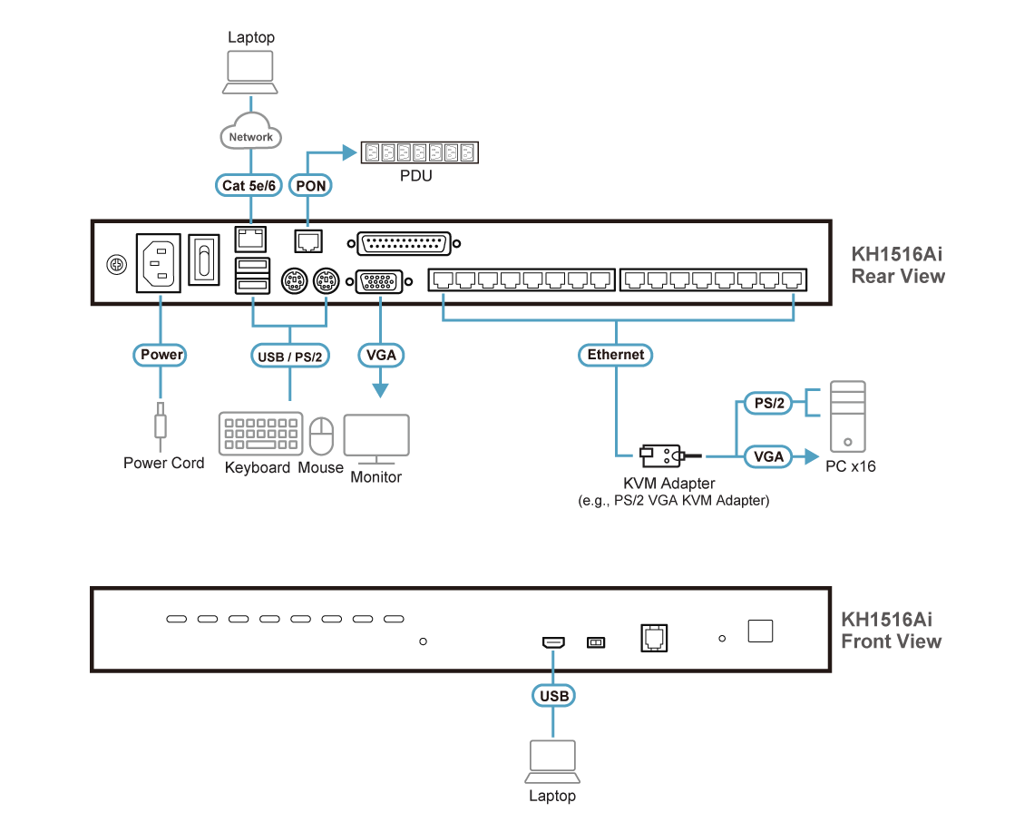 2. El KH1516Ai no es compatible con Virtual Media aunque esté emparejado con un Adaptador KVM habilitado para Virtual Media.